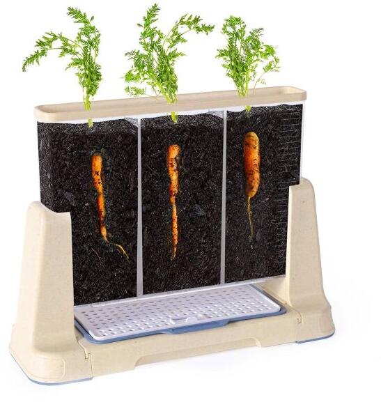 • Cu un design inteligent si transparent, ghiveciul este impartit in 3 compartimente, fiind ideal pentru a cultiva si observa simultan specii diferite sau pentru a compara cum cresc aceleași plante in condiții variate.