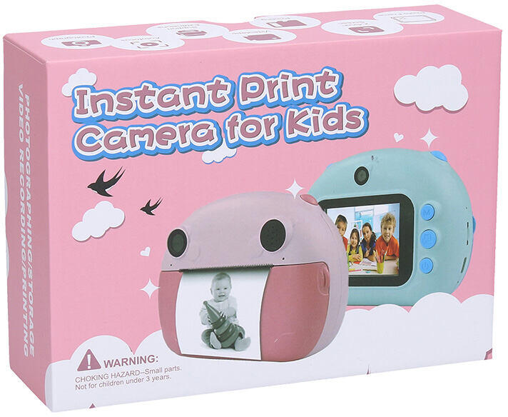 Aparat foto digital pentru copii cu imprimantă, roz - fotografii de 12Mpx, video Full HD. Dimensiuni 11x4,5x8,5 cm. Rezoluție foto 12 megapixeli (4800x2656), video Full HD (1920x1080). Setări de calitate a imprimării. Cameră selfie, cronometru, fotografiere continuă, inserare de timp, diverse efecte (cadre, animații încorporate, filtre) pentru fotografii, jocuri, player mp3, ecran de 2,4 inci. Mai ales butoanele pentru a face fotografii, pentru a înregistra videoclipuri, pentru a imprima fotografii. Baterie încorporată de 750 mAh, funcționare 180 de minute, cablu USB inclus. Lățime hârtie foto 5,5 cm, lățime imprimabilă 4,8 cm. Include 2 role de hârtie foto și curea. Compatibil cu carduri micro SD - max. 32 GB. Cardul de memorie nu este inclus.